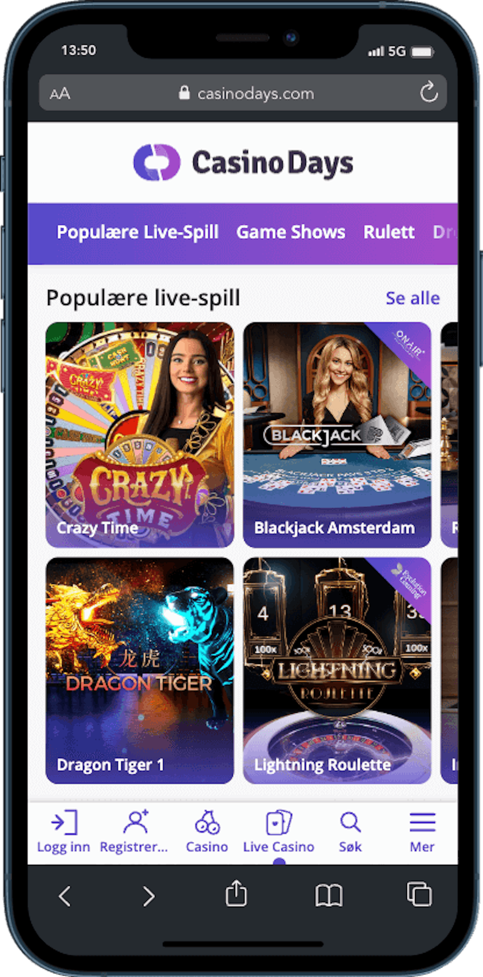For deg som primært er interessert i å spille casino kan det absolutt være verdt å sjekke ut Casino Days. Med både vanlig casino og live casino nå tilgjengelig for norske spillere, finner du et solid utvalg av spilleautomater i tillegg til en rekke live casinospill.