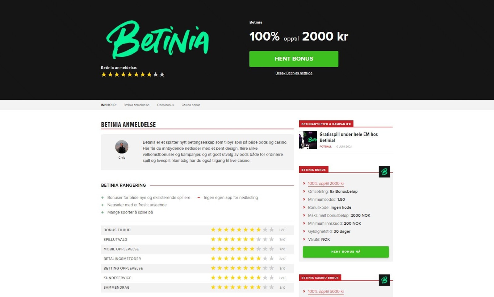 Anmeldelser og rangeringer av bettingsider og bonuser er det vi gjør aller best hos Oddsbonuser.nu. Vi gjør undersøkelser med utgangspunkt i det spillere selv ønsker, med mål om å formidle best mulig informasjon videre til deg som vil spille odds på nettet.